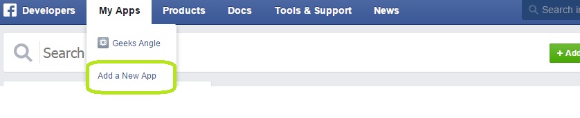 - Click on the My Apps Options and then on "Add a New App" My Apps -> Add a New App.