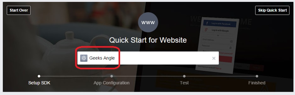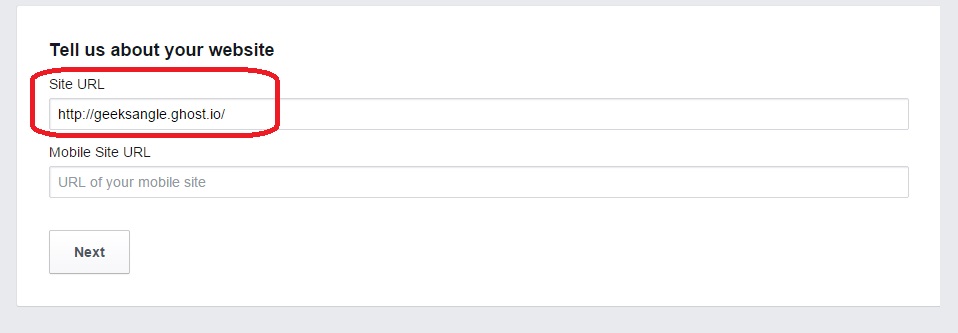 - As you click on any of those four available options you will ext get this window, requiring some details about your website, such as: