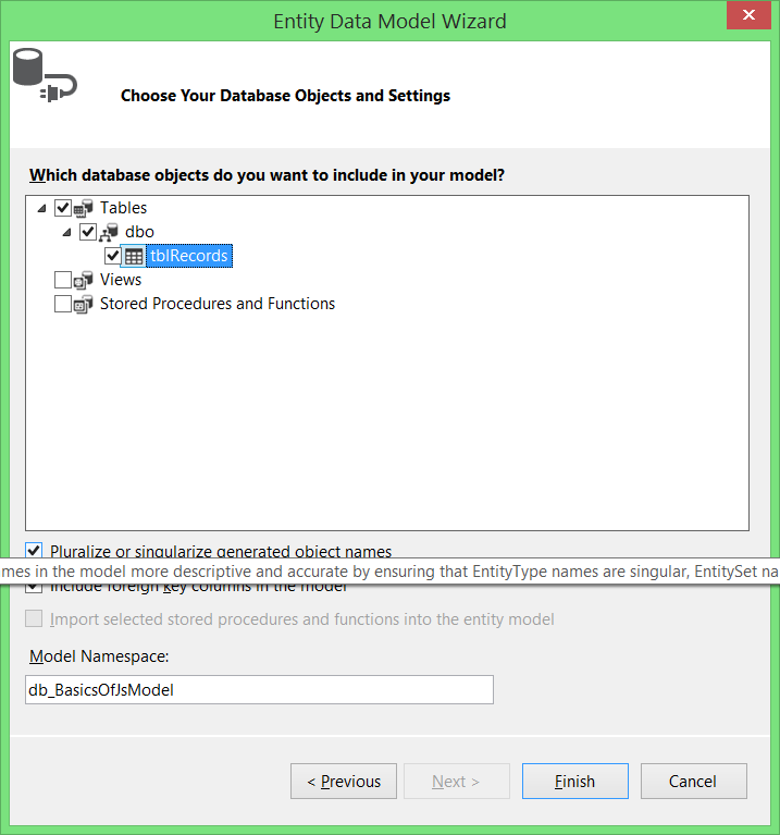 Add the class file, mark the class as partial, and change the class name to tblRecord.