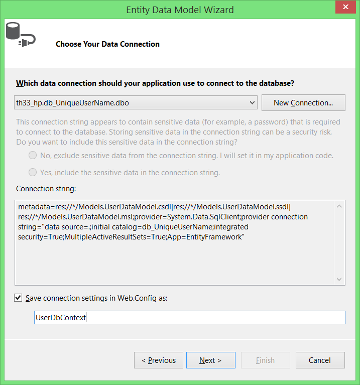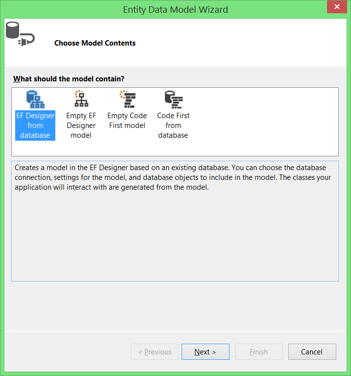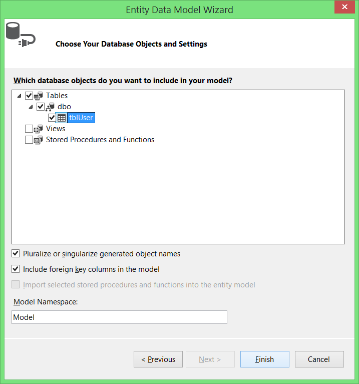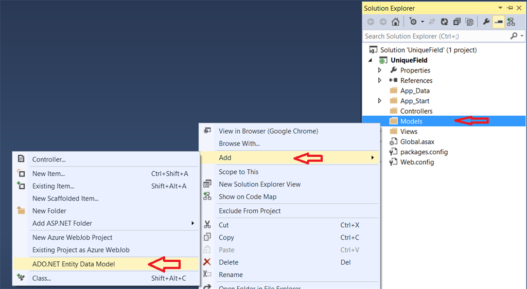 The next step is to add an ADO.Net Entity Data Model in the Models folder.