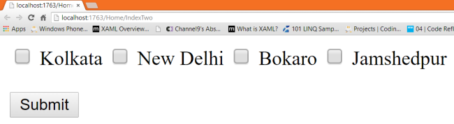 - If a user selects any of the items then if the block condition will be false and it will come to the else block in which we created a new object of the StringBuilder class. Inside the foreach loop, we appended the CityName of the selected checkbox.
