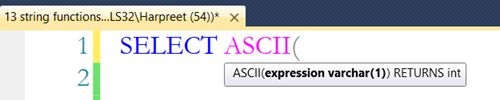 Look at the parameter this ASCII function expects, it is expecting a parameter argument of type nvarchar and returns an integer value back.