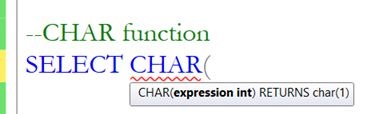 To convert an ASCII code into a character, we use the CHAR function. The integer value we pass in, must be between 0 and 255.