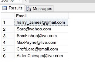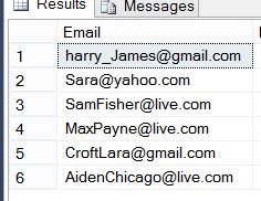 - SELECT Email, PATINDEX('%@live.com',Email) FROM tblStudents WHERE PATINDEX('%@live.com',Email) > 0