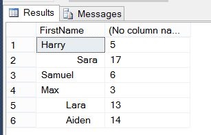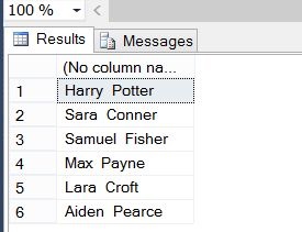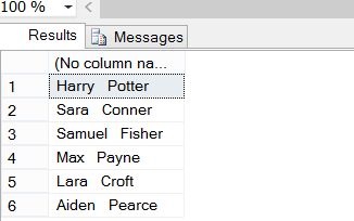Look at the output we got. We got both the first name and last name. But let's say we want to add a space between FirstName and LastName.