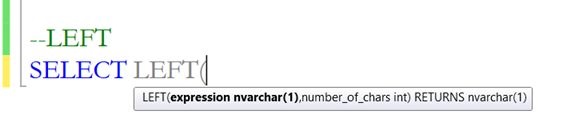 Look at the parameter this LEFT function expects, the first parameter expects an argument of type nvarchar and the second parameter expects an integer value that will return the number of characters from the left hand side.