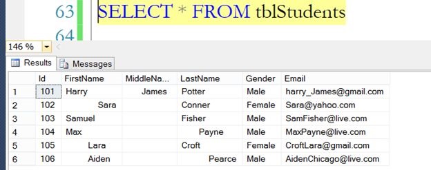 - SELECT FirstName, Email, REPLACE(Email,'@yahoo.com','@live.com') FROM tblStudents
