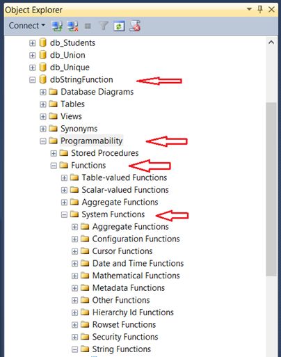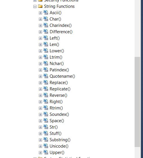 If you want to see all the available system functions, expand the user-defined database you created then expand programmability then expand functions then expand system functions.