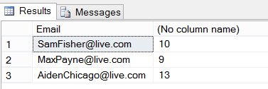 - GROUP BY SUBSTRING(Email,CHARINDEX('@',Email)+1,LEN(Email) - CHARINDEX('@',Email))