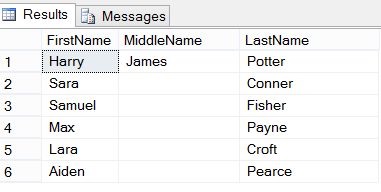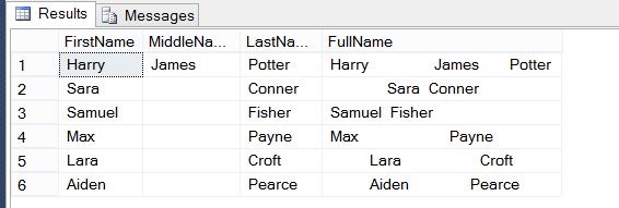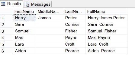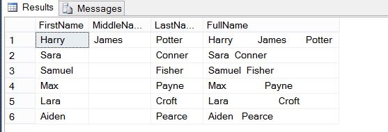 Let's say we want to display the FirstName and LastName as FullName and for that we can write the query below.
