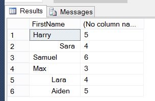 - SELECT FirstName,LEN(LTRIM(FirstName)) FROM tblStudents;