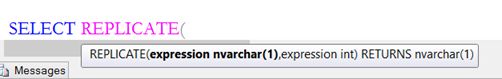 - Look at the second expression, REPLICATE('*',5). We concatenated the substring with a replicate value and currently these two expressions will give us ha*****.