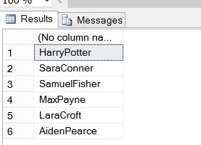 - SELECT RTRIM(LTRIM(FirstName)) + RTRIM(LTRIM(LastName)) FROM tblStudents;