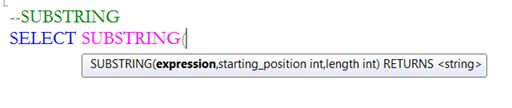 - Look at the first expression, SUBSTRING(Email,1,2). In this expression we passed the Email column in the first parameter as an expression. In the second parameter we passed the start position from where this substring function will take a part of the string from the email column and in the third parameter we passed the length.