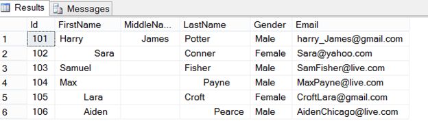 - ('Max ','',' Payne ','Male','[email protected]'),