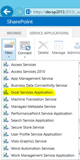 - On the Manage Service Application page, on the ribbon, click New and then click Excel Service Application.