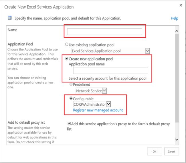 - In the Application Pool section, select the Application Pool that the Excel service application will run in (if it exists), or create a new application pool.