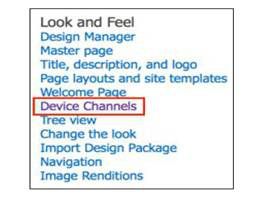 Select Device Channels from the Look and Feel section. You can also navigate to the Device Channels page from the Design Manager page.