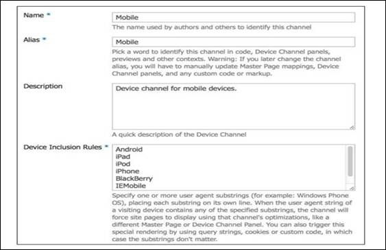 Here, we will create a device channel in SharePoint 2013 that will identify Android, iOS, BlackBerry, WebOS and Windows.