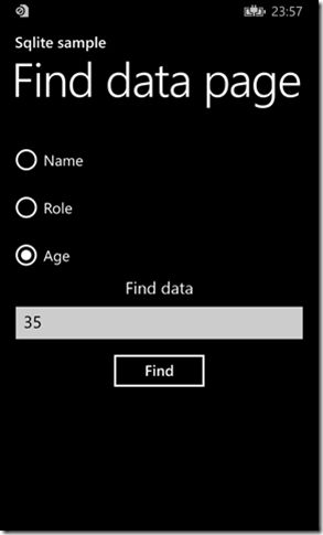 - private void btnFindSample_Tapped(object sender, TappedRoutedEventArgs e){ Frame.Navigate(typeof(Finddata));}