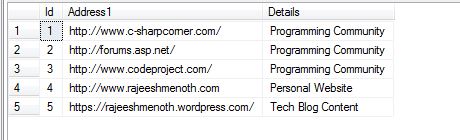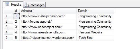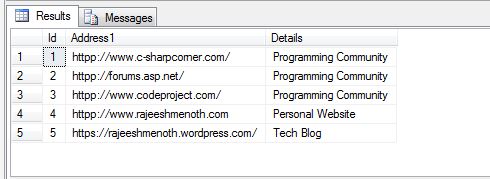 The given table contains incorrect address in the "Address1" column like httpp://www.c-sharpcorner.com/, so http is appended with an extra p ("httpp"). So we can update those values in a single query. How ? Microsoft SQL Server provides Replace function to replace particular data.