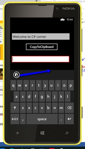 Click the CopyToClipBoard button to copy the text to the clipboard. Now, place the cursor onto another TextBox and you can see the paste symbol, press paste to paste the copied text as shown in the following screenshot.