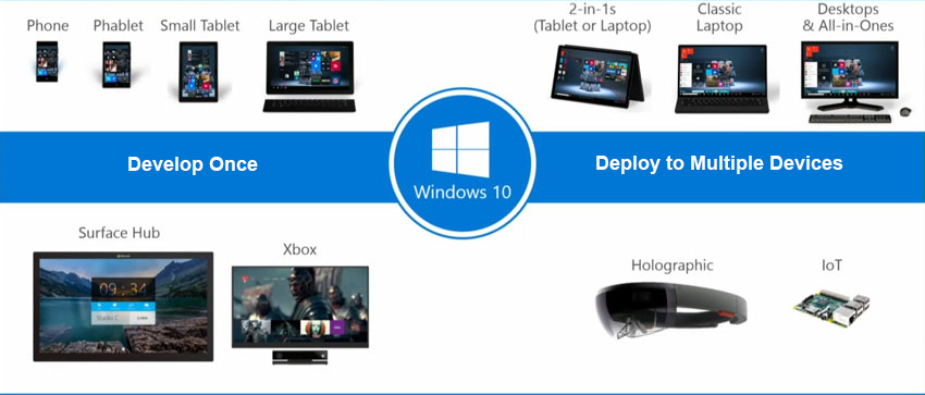 Windows 10 introduced the “Develop Once and Use it For All” concept making it is easier to develop apps for UWP with one API and one package to reach all Windows 10 devices.