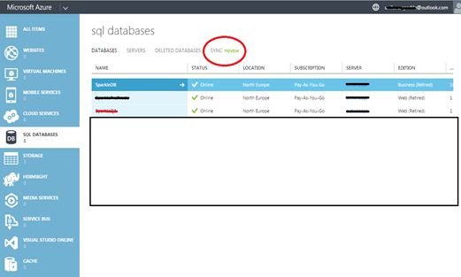 Here we will first see a way to synchronize databases. How to synchronize a SQL Azure database from one server to another sever (SQL Azure Server). Prerequisites for this demo: Create two SQL Azure databases with two regions (data centers).