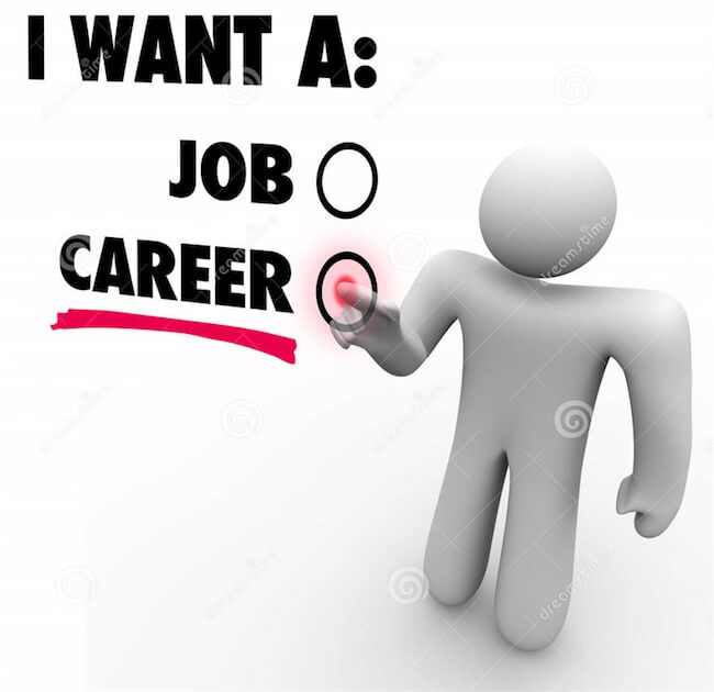Most careers start with education. Many people work jobs because they don't have the education needed to enter careers, though jobs can certainly turn into careers, regardless of type of employment. Careers are about building on experience and advancing your job skills and knowledge in the area where you want to excel.