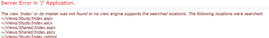 This is because you have created an action but not a HTML page for this action (index). Now I will add a view page for this ActionResult Index.