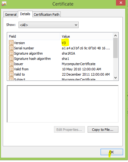 Now the version of the certificate is V3.