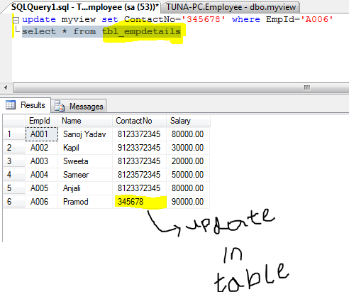 As we have mentioned a view is an interface between end-user and the original table.