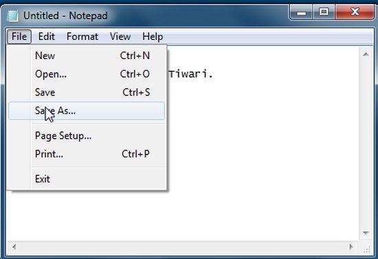 Step 1: Notepad will be used to create the code as a text file, if you want to make the batch file then simply save it as a .bat. The .bat is the extension for batch files. You can open Notepad by simply clicking: