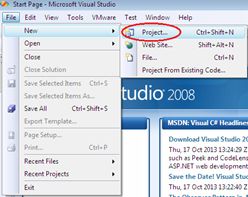 To create the new Windows application project, select "File" -> "New" -> "Project..." from the main menu.