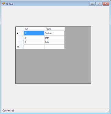Now to display the contents of the Drugs table in the grid view, double-click on Form1 to open the code editor, then change the code of Form1_Load to be as follows: