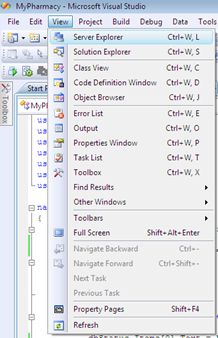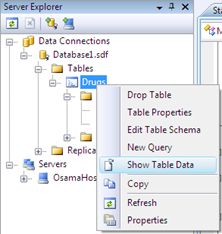 From the server explorer, right-click on the Drugs table and select "Show Table Data" as shown in the following figure.