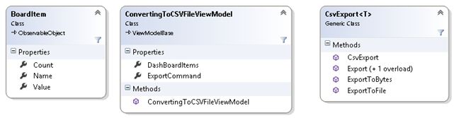 - ConvertingToCSVFileViewModel: is my view model to connect data with the view (I use binding)