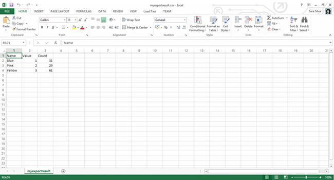 This sample could be called "Export to Excel", but it is not supported, the only way is to write the data in a CSV file that can be opened in Excel.