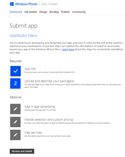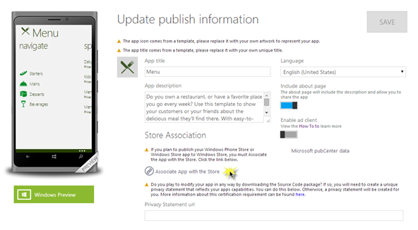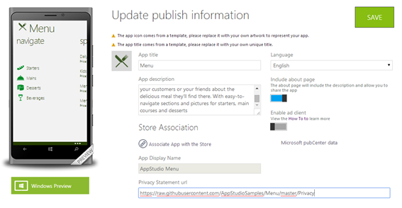 The purpose of this article is to show how to submit, in the Store, the Menu App created by Windows AppStudio. See more in the following articles: