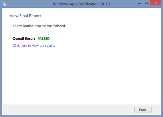 At the end, it will show the result, if it passed or not and provide a report with more details. See the complete report here: MenuApp-WindowsAppCertificationKit-Report. If the app does not pass these tests, we should not submit the app to the store until the issues reported in the report are fixed.