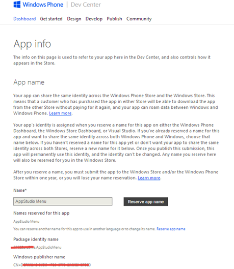 To fill in this form, we should open the Dashboard in Windows Phone Dev Center or in Windows Dev Center to get the information about our account (Publisher GUID, Publisher name).