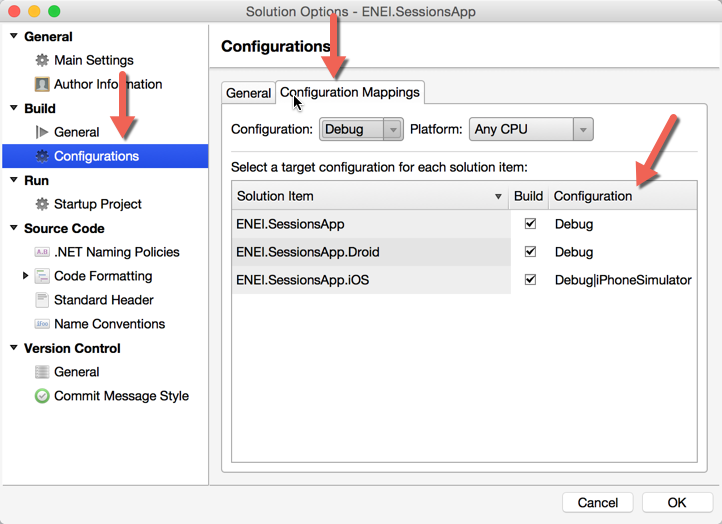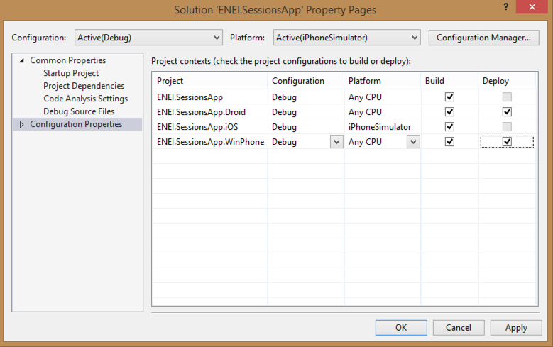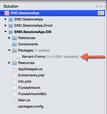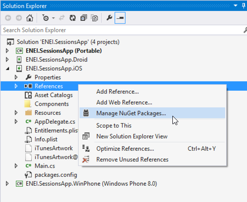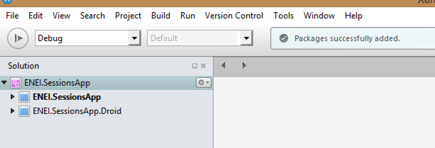 - ENEI.SessionsApp: Portable Class Library project that will contain the shared code between targets. This project is independent of the platform.