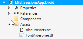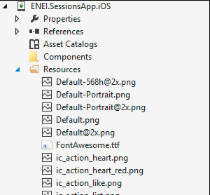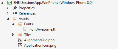 Add the FontAwesome.ttf file to the Resources folder as in the following: