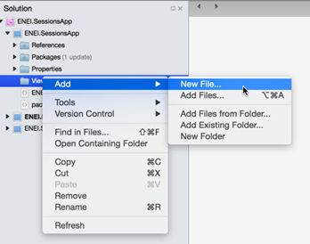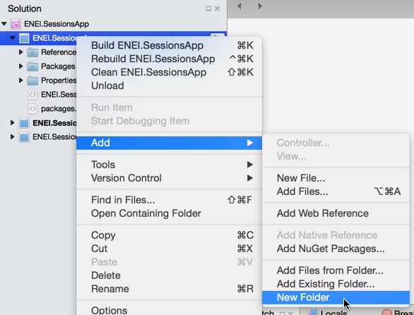In the ENEI.SessionsApp project create the Session and the Speaker class in a “Model” folder, as described in Figures 2 and 3: