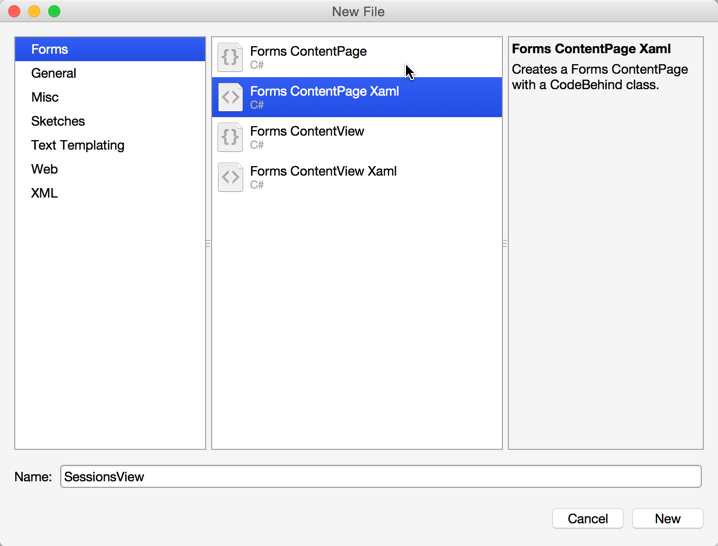 Now let's change the App.cs in ENEI.SessionsApp to use the SessionsView: