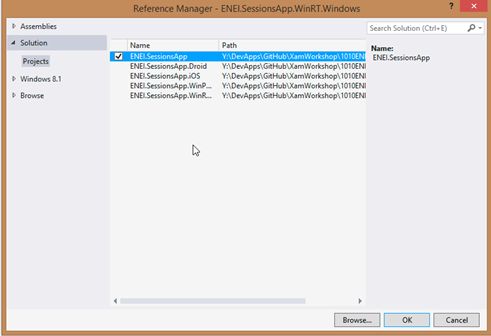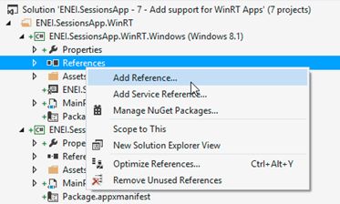 Now, you will add the ENEI.SessionsApp reference to the WinRT project, as described in Figure 4 and Figure 5.