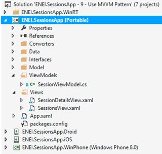 In the ENEI.SessionsApp project, create a folder called “ViewModels” and then create the class “SessionViewModel”. The result should be something as in the following: