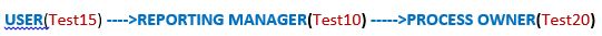 A user (Test15) raised a request and the normal flow is for It to go to the reporting manager (Test10) and if the reporting manager approves it then it will go to the process owner (Test20).