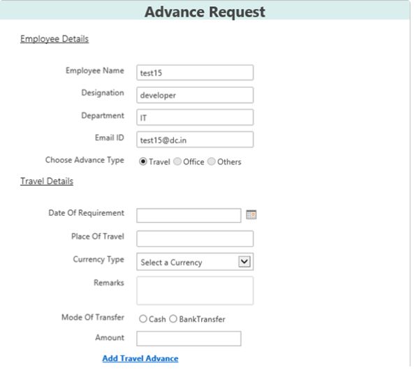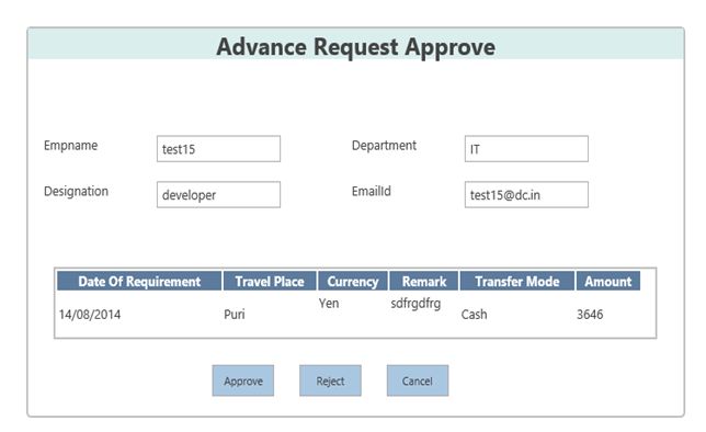 - EmpAdvanceRequest (MasterList) where basic requesting information will be stored, like:
