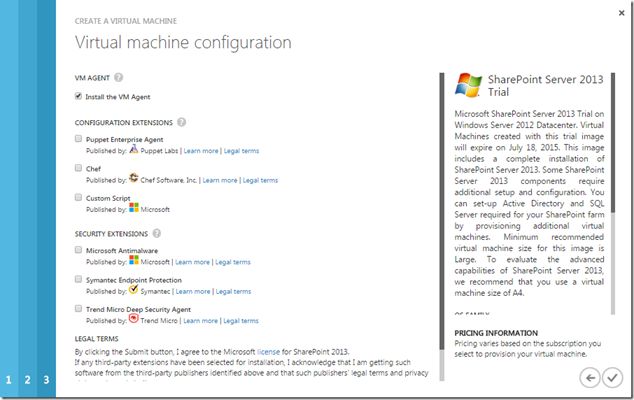 Run the SharePoint 2013 Central Administration from the Start Menu. For further configurations, please see the References link.TipMake sure you are turning off your virtual machine after using the SHUT DOWN option (else you might use up your credits faster).Referenceshttp://azure.microsoft.com/en-us/pricing/free-trial-faq/http://www.sharepointcto.com/View.aspx?id=5SummaryIn this article we saw how to procure an Azure VM for SharePoint 2013 development purposes.